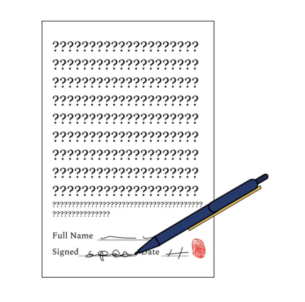 You’d think I’d have seen the red flags waving directly in front of my face. Alas, my prescription needed updating because I saw nothing; zilch, nada. If I had bothered to read the fine lines, I would have seen, “I will not use or try to accomplish any of the things mentioned in the black notebook given to Joe on the 6 of April at 12:13 PM. Should this be broken, triple the negotiated price is to be paid to Joe, or a sentence of 13 years in prison is to be awarded to the signee”. I still don’t get how this was a legal contract. But, for some reason or other, it checked out. Could have been laced with some voodoo magic for all I know. If I hadn’t signed that contract, I could have started my business by now. An investor liked my business idea and offered to become partners. It was a dream come true, so I turned him down. Let’s not forget, now I'm officially single for the rest of my life. I should just become a nun! Looking back, he must've been the devil in disguise. Who else would buy MY notebook? I wish I could ask him, but I haven't seen or heard from him since.