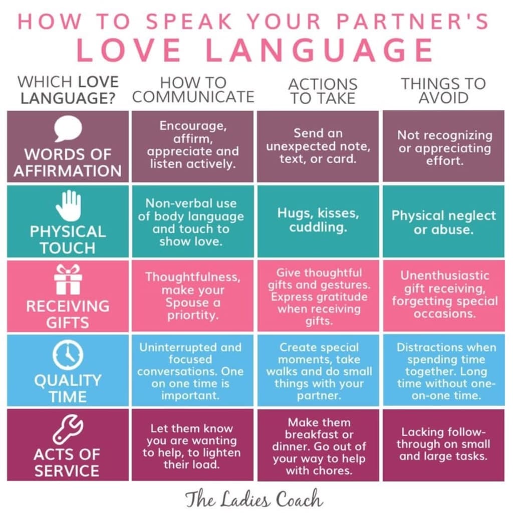 Love makes the world go around. Most of us have an insatiable desire to be cherished by another person. You want to give and receive love but you don’t know how. Unfortunately not all of us are fluent in our partner’s love languages. Knowing what the top five love languages are is only half the battle. You must know one through five. The top five love languages are words of affirmation, physical touch, receiving gifts, quality time and acts of service. Listen, learn and master what you and your partner’s love languages are.