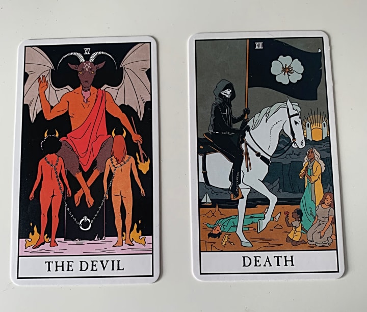 The main culprits within the deck that provoke a negative and somewhat fearful reaction are probably the Devil card and the Death card. They conjure up a darker context that sells films, attracts viewers, and instils the mystery of the unknown. They are powerful, and they can be mysterious, that I would agree on, but dark and dangerous they are NOT!!