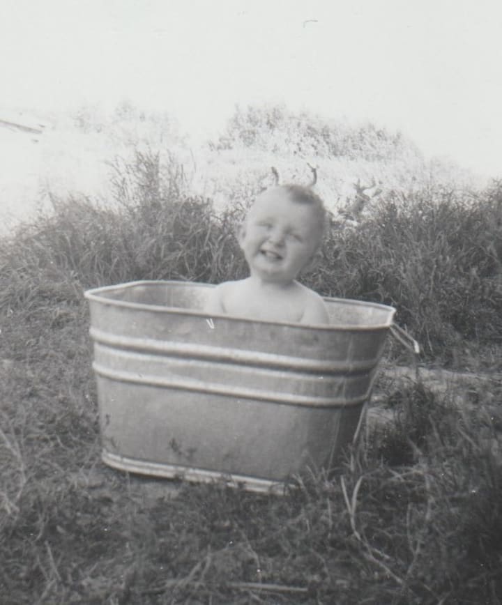 My dad’s brother, sister and father also lived in a separate house on the same farm as us. My grandpa was pretty serious mostly.