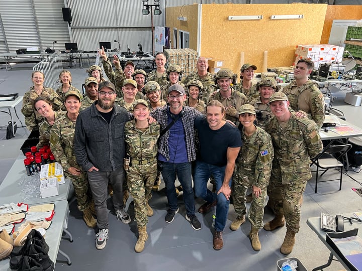 I didn’t have any scenes interacting with Brenton (just one speech where he’s in the audience), but the first time I saw him, he looked so freaking cool… he was just leaning back on a chair at base camp with one foot on another chair, playing his guitar. He’s super chill and really open and friendly. At one point his four adorable kids and stunning wife visited the set, which was an absolute highlight.