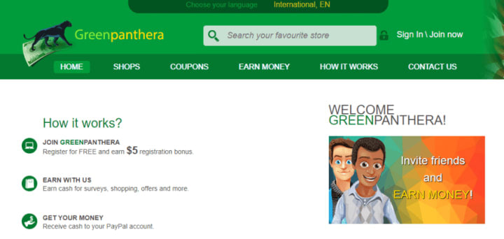 GreenPanthera an online cashback site that also lets you earn by taking surveys and completing offers where you can also register for free and earn $5 registration bonus.