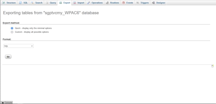 By following these steps, you can download a copy of the database in .sql format to your computer. If you later need to restore the database, access phpMyAdmin, navigate to the Import tab, select the file containing the database, and click the Go button to initiate the upload process.