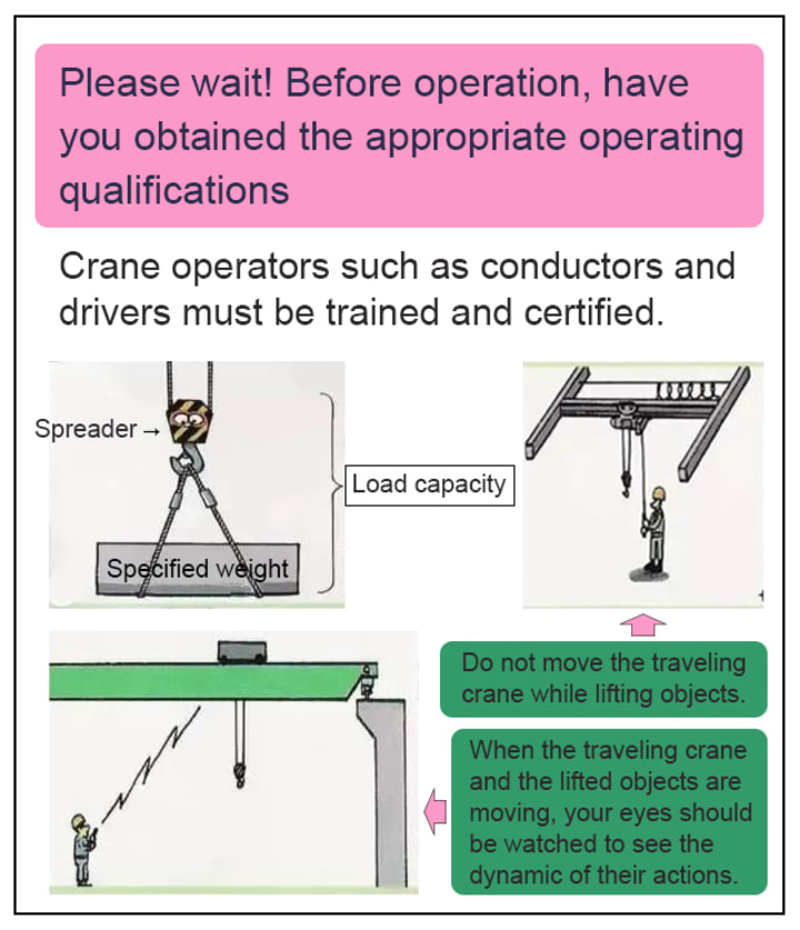 - Before moving the traveling crane, there is no abnormal condition before and after, and look at the direction tips.