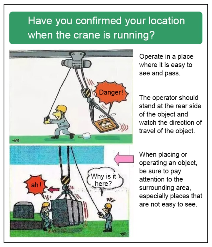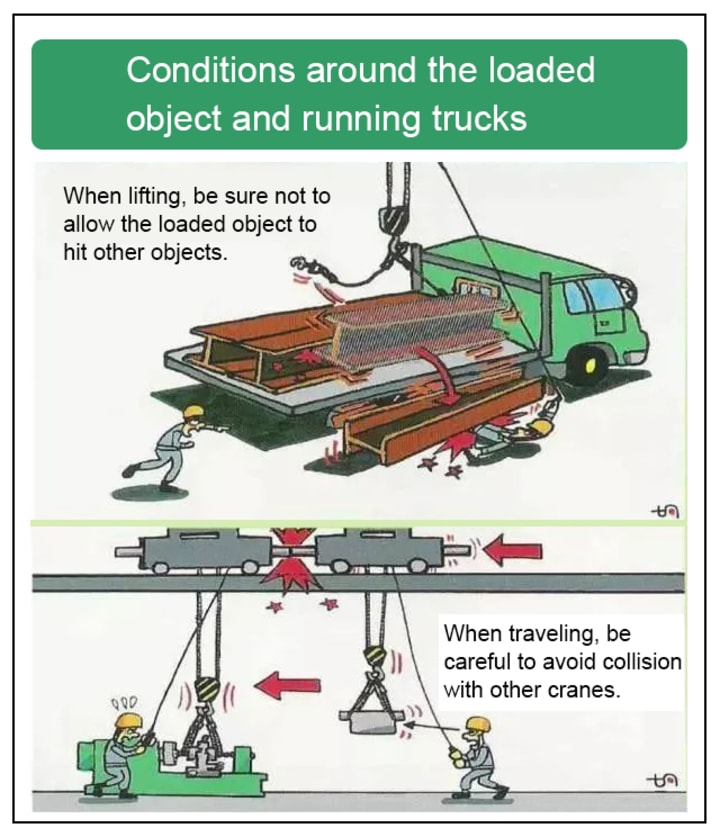 - When lifting objects, do not move the traveling crane.