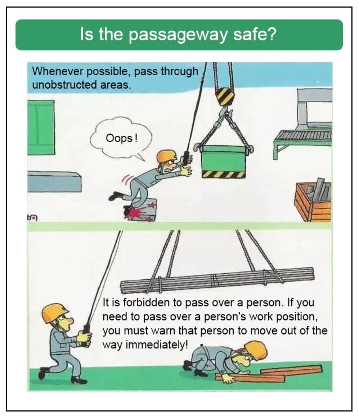 - It is forbidden to pass on top of a person, if you need to pass the work position where another person is, you must remind the person to avoid it immediately!