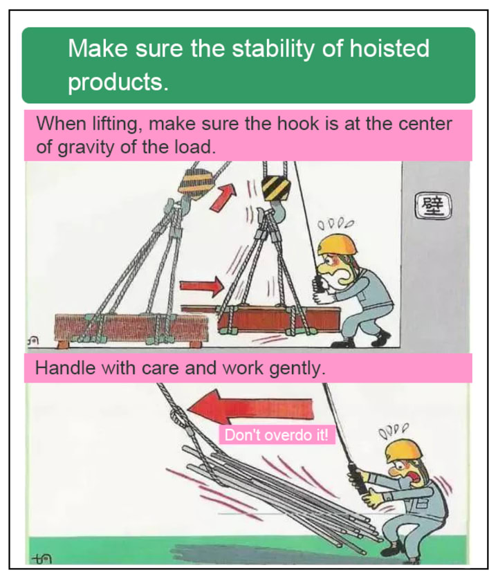- When lifting, make sure the hook is at the center of gravity of the object.