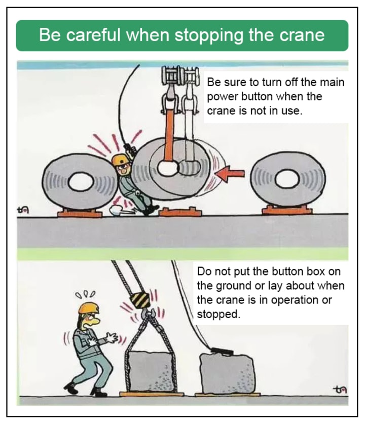 - Confirm the direction of operation, avoid pressing the wrong button, and try to operate the hook slightly first to make sure there is no problem before continuing the operation.