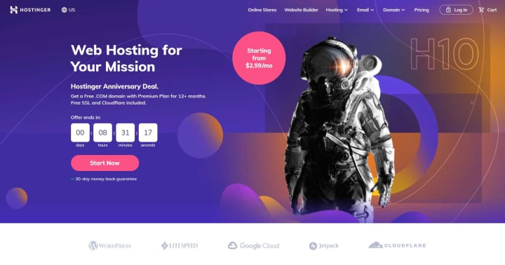Hostinger is a fast-growing and popular web hosting company for WordPress. Hostinger's has many incredible features include unlimited bandwidth, a free domain, and free SSL, and a 30-day money-back guarantee. Additionally, they also have a 1-click WordPress install with managed updates and WordPress acceleration. Hostinger also provides its own designed control panel with additional features.