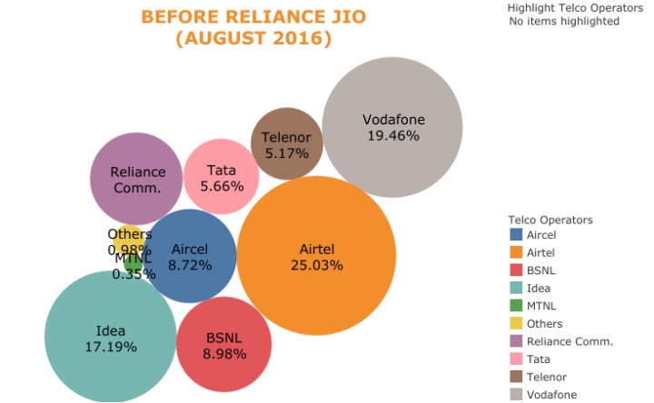 Before jio there were many big players in the telecom industry like airtel, idea, vodafone, who captured around 60% of the market.