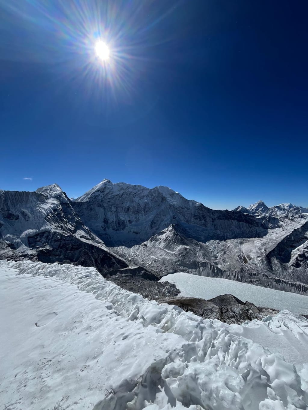 For most climbers, the hardest part of the climb is getting through this near-vertical section. However, with the guidance of experienced guides and the right gear, it is manageable. Once at the top, you are rewarded with one of the most spectacular views on earth. Everest, Lhotse, Makalu, Ama Dablam, and other towering peaks surround you, giving a 360-degree view of the Himalayas.
