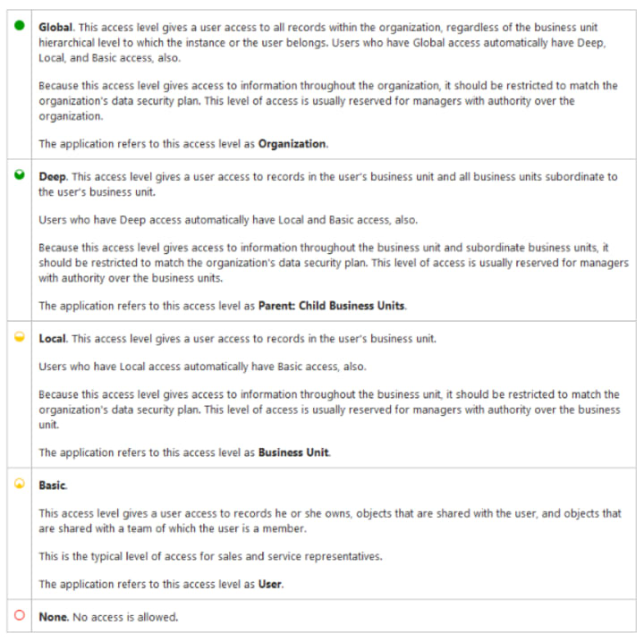 Dynamics 365 uses 5 access levels: