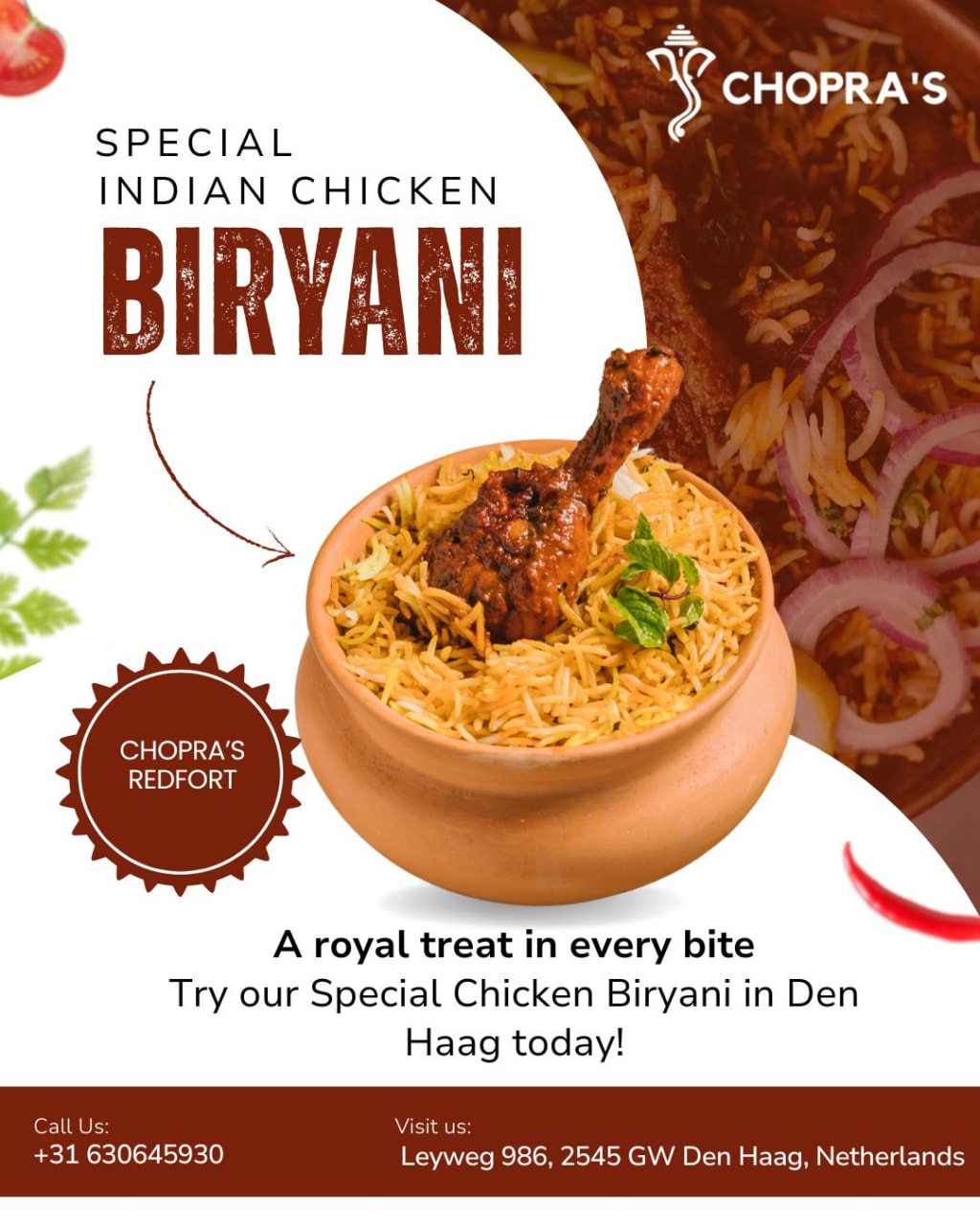 If you’re searching for a beste Indiaas restaurant Den Haag, look no further. Chopra’s Redfort is where tradition meets taste, and every dish becomes a memory. Come experience our biryani – aromatic, flavorful, and unforgettable – just like India itself.