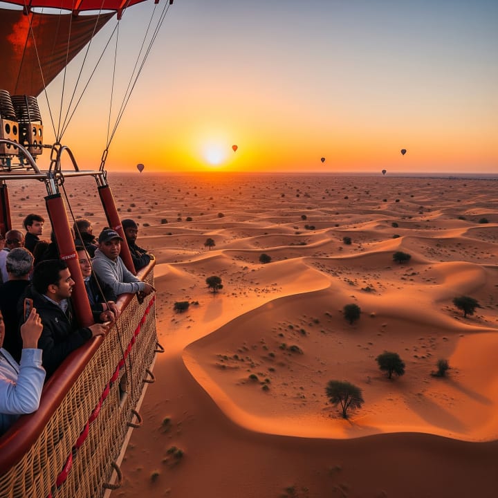 Start your day with one of the most surreal experiences in Dubai — floating above the golden dunes of the Dubai Desert Conservation Reserve in a hot air balloon. With falcons flying beside you and the sun rising over the horizon, this is solitude at its most majestic.