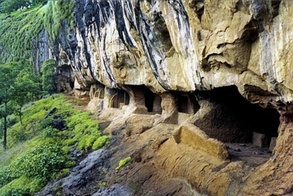 The little man was determined to explore a cave, because its black mouth had gaped at him. The four men took a lighted pine-knot and clambered over boulders down a hill. In a thicket on the mountainside lay a little tilted hole. At its side they halted.
