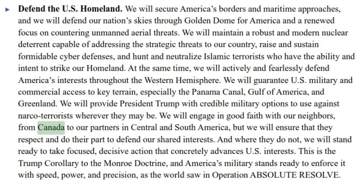 The Trump administration’s 2026 defence doctrine explicitly warns that if Canada does not secure its portion of the hemisphere to American standards, Washington will take ‘focused, decisive action’.