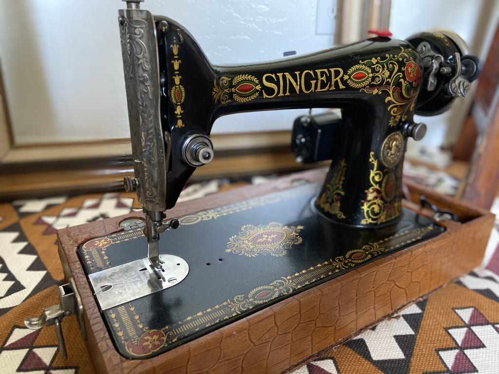 Soon after launching, we became regulars at local markets and pop-ups. When COVID-19 was announced as a global pandemic, our business stopped. We would have never foreseen a devastating international pandemic putting a hold on our business... and yet, there we were. It’s during this time that we looked back to the sewing machines we had both inherited from our grandmothers. Machines we kept around the house collecting dust because we couldn’t quite figure out how to make them work. One of them was a Kenmore from 1970’s and the other, a Singer from a Japanese military base in the 1960’s. With the inspiration to restore our grandmother’s respective machines, Tea, co-owner and founder set out on a journey of restoration. We acquired many machines with stories like ours with the hope to restore vintage items from the past to create new, exciting designs that combined our love of things both old and new. One of the first machines that was donated to us was from 1910 – Singer Red Eye Sphynx which is now fully operable inside of a treadle machine.