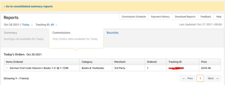 It is a $243.46 that I have made on amazon as an affiliate. You can also see the clear that the earning proof I’m going to share with has been made on OCTOBER 28 2021.