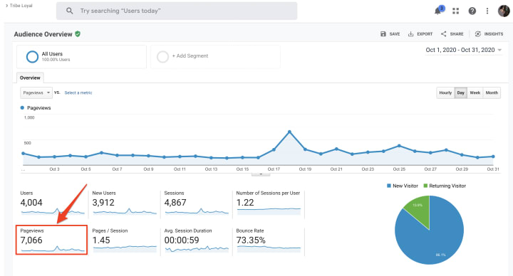 Now, many of you might be balking at the number of views this site had from the date range 10/1/20 to 10/31/20.