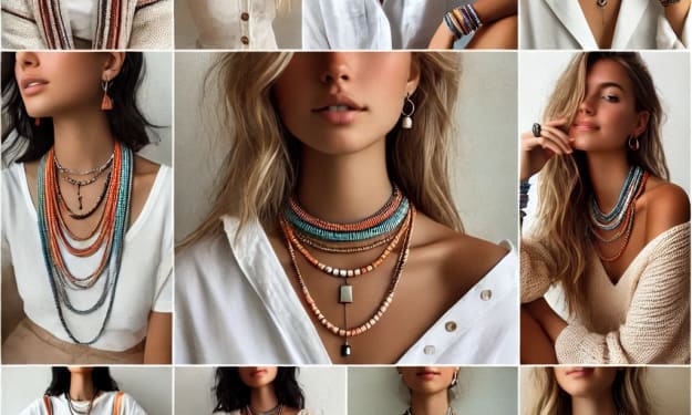 Stick to similar colors or materials. For example, if your earrings are made of glass beads, pair them with a glass bead necklace for a coordinated look.