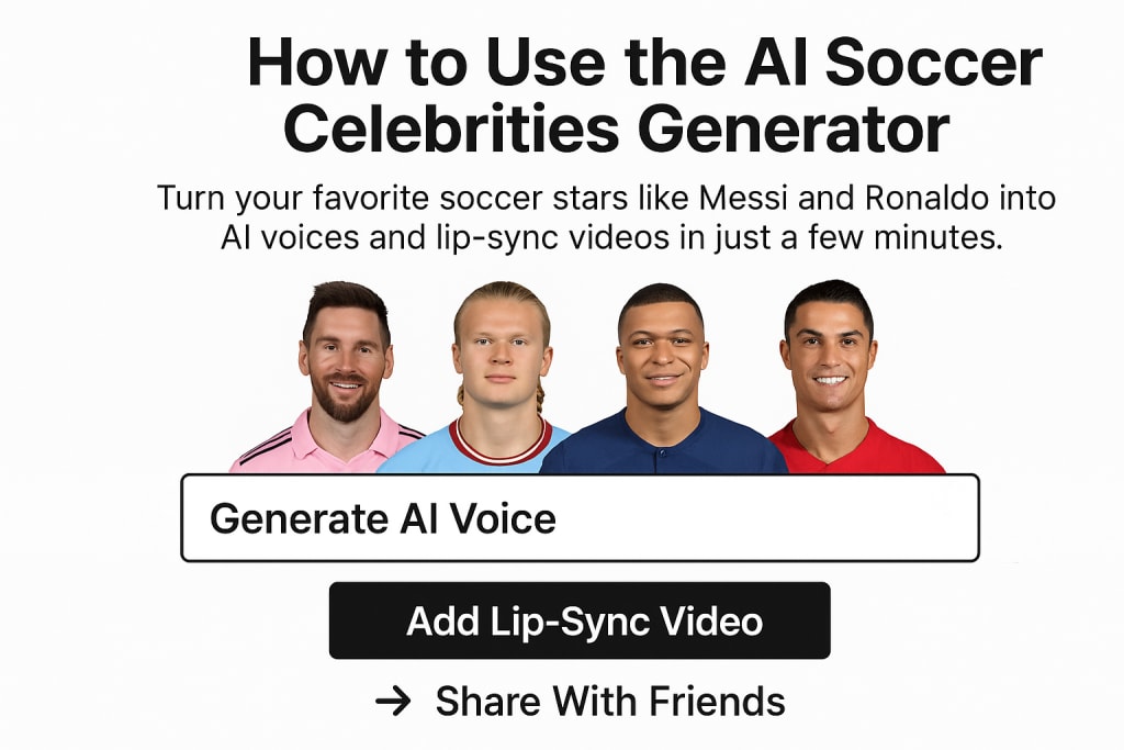 Turn your favorite soccer stars like Messi and Ronaldo into AI voices and lip-sync videos in just a few minutes.