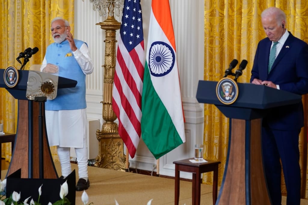 An Indian reporter asked about addressing climate change, and an American reporter pressed Modi on human rights concerns— a particularly delicate topic as the United States seeks closer ties with India as a bulwark against China’s influence in the region.