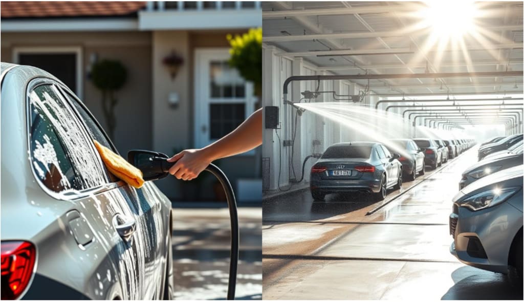 Choosing between washing your car at home or at a car wash is important. It affects your car's look, your time, money, and car care in the future.