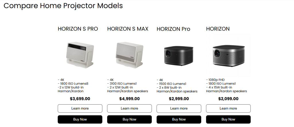 The standard Horizon is a smart choice if you want strong performance but don’t necessarily need 4K. It offers the same brightness as the Pro version, so you’re still getting a powerful image even in rooms with some ambient light. This model is great for households that use the projector daily for TV, sports, Netflix, and gaming.