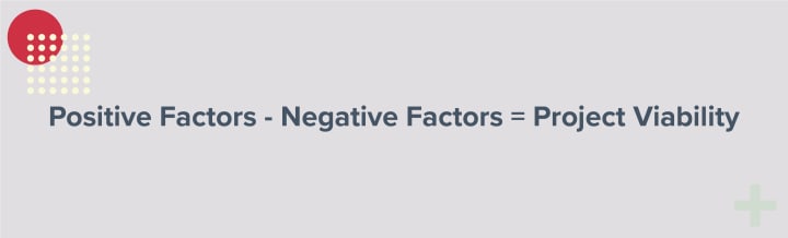 Benefits - costs = profitability or Positive factors - negative factors = project viability.