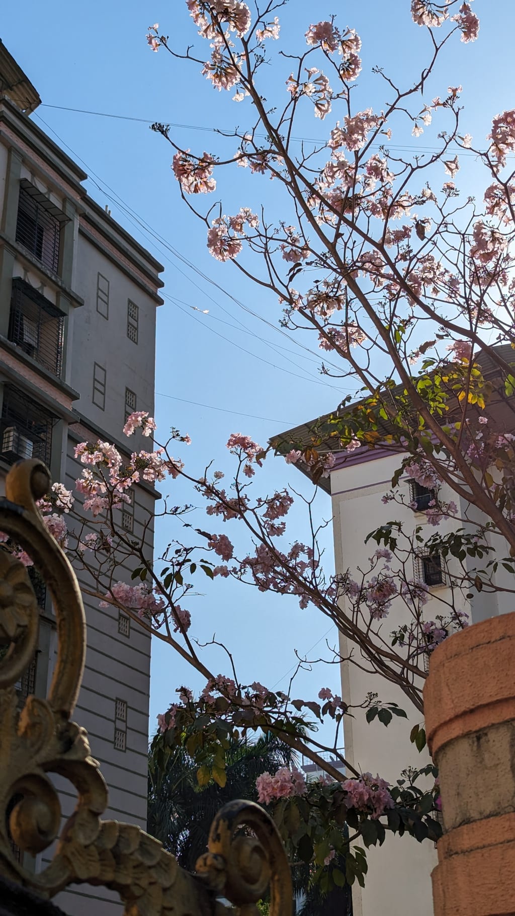 I often feel, we don't celebrate the Spring and Summer of India as much as they deserve to be celebrated. This place has brought about a lot of happiness through its Summer blooms. The Gulmohar tree across my home would be the one that I shall cherish in the coming years - During the summer, a vibrant orange bloom covers the tree, its dried flowers spread out on the silver rooftop of a car that stands beneath it. It looks beautiful against the backdrop of the off white buildings.