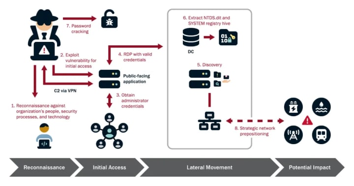 In contrast, Volt Typhoon, linked to elements of the People’s Liberation Army (PLA), is a pre-positioning campaign. The operation embeds itself in critical infrastructure sectors (electric grids, water treatment, transportation, ports, pipelines) using ‘living-off-the-land’ techniques to avoid detection.