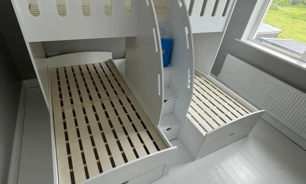A double bunk bed can serve as a great space-saving solution. It combines a comfortable upper-level bed and a futon for the lower level. It can sleep two people comfortably, and it can also serve as a couch when a child is not using it. These beds are especially useful in rooms with televisions.