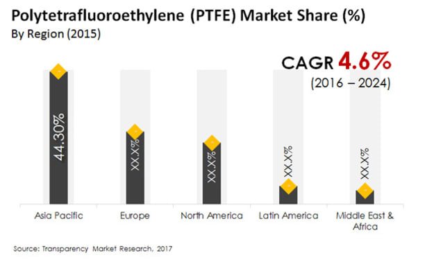 Global Polytetrafluoroethylene (PTFE) Market is projected to expand 4.6% CAGR from 2016 to 2024