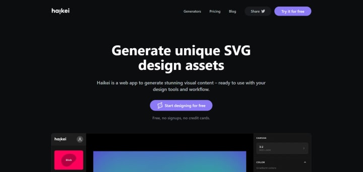 Haikei is a bit of a powerhouse because it gives you several SVG generators in one place. With Haikei, you can make things like blobs, waves, grids, and other abstract shapes.