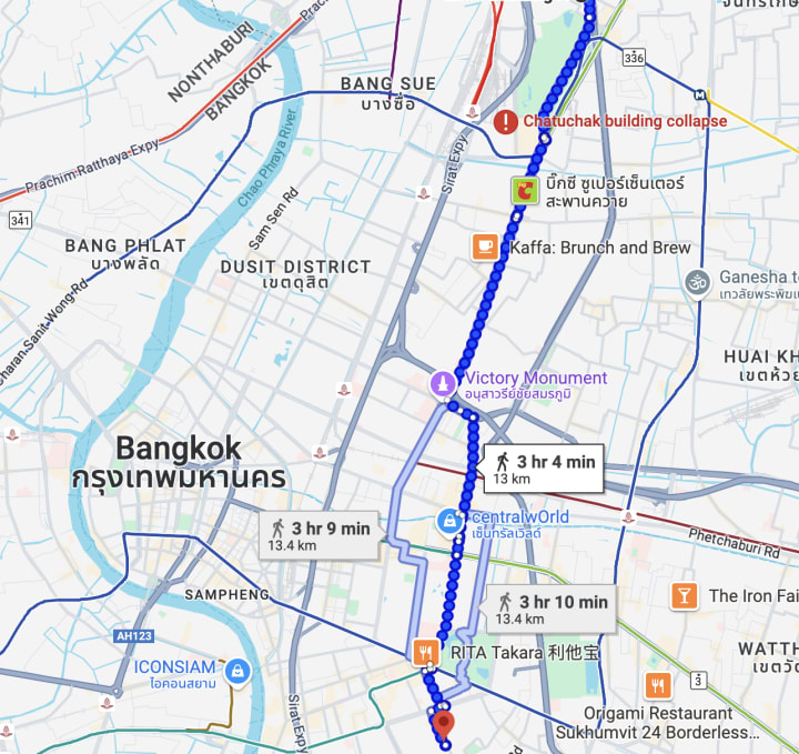 I checked Google Maps: 13 kilometers to home. Ironically, that’s the same distance I ran weekly. But today, it was over 32°C. Not ideal for a casual walk.
