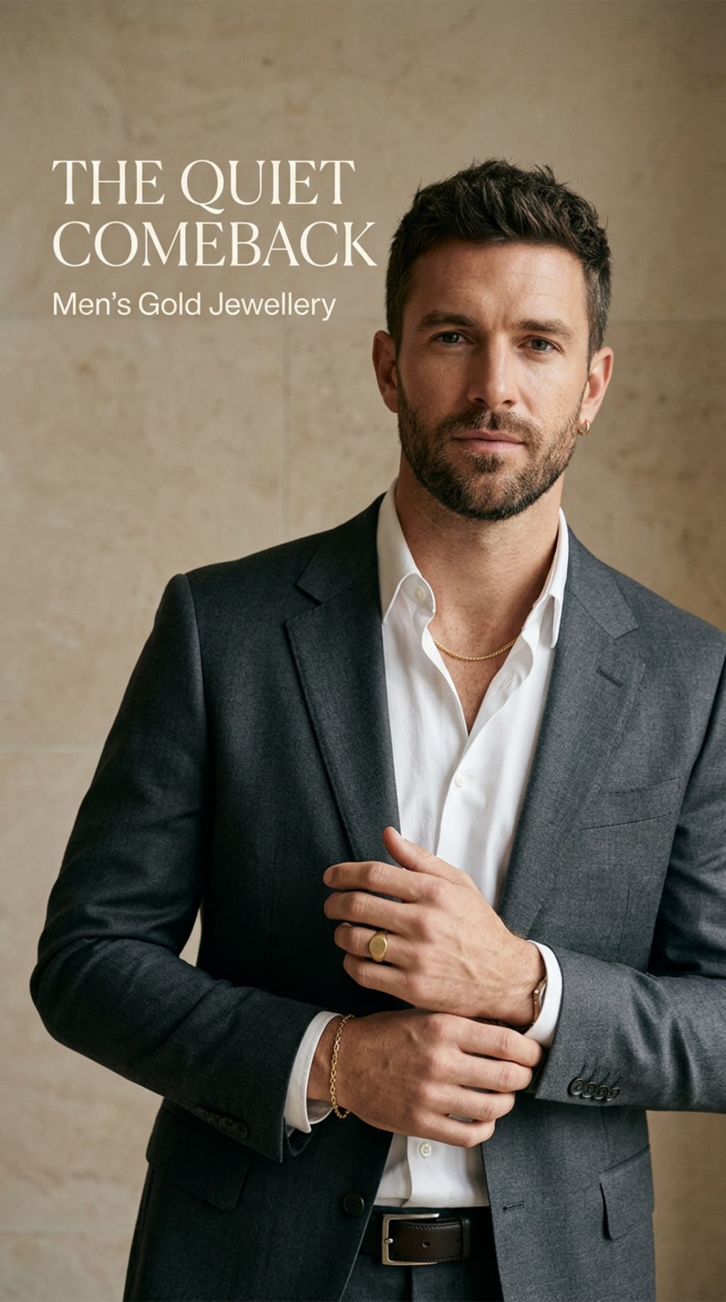 Today’s men are using gold jewellery to tell subtle stories about who they are. A simple band might reflect minimalism. A vintage-inspired signet ring might nod to family tradition. Even small gold hoops or studs are becoming more common, worn with quiet confidence.