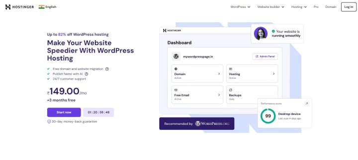 r WordPress hosting in India. With servers in Asia, including India, Hostinger offers excellent performance at budget-friendly prices. It’s ideal for those who are new to website development, providing an intuitive dashboard and easy WordPress installation.