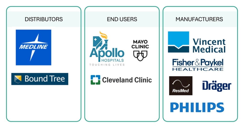 Prominent market participants include Fisher & Paykel Healthcare (New Zealand), Philips Respironics (Netherlands), ResMed (US), Teleflex Incorporated (US), Vyaire Medical (US), Medtronic plc (Ireland), GE Healthcare (US), and 3B Medical (US).