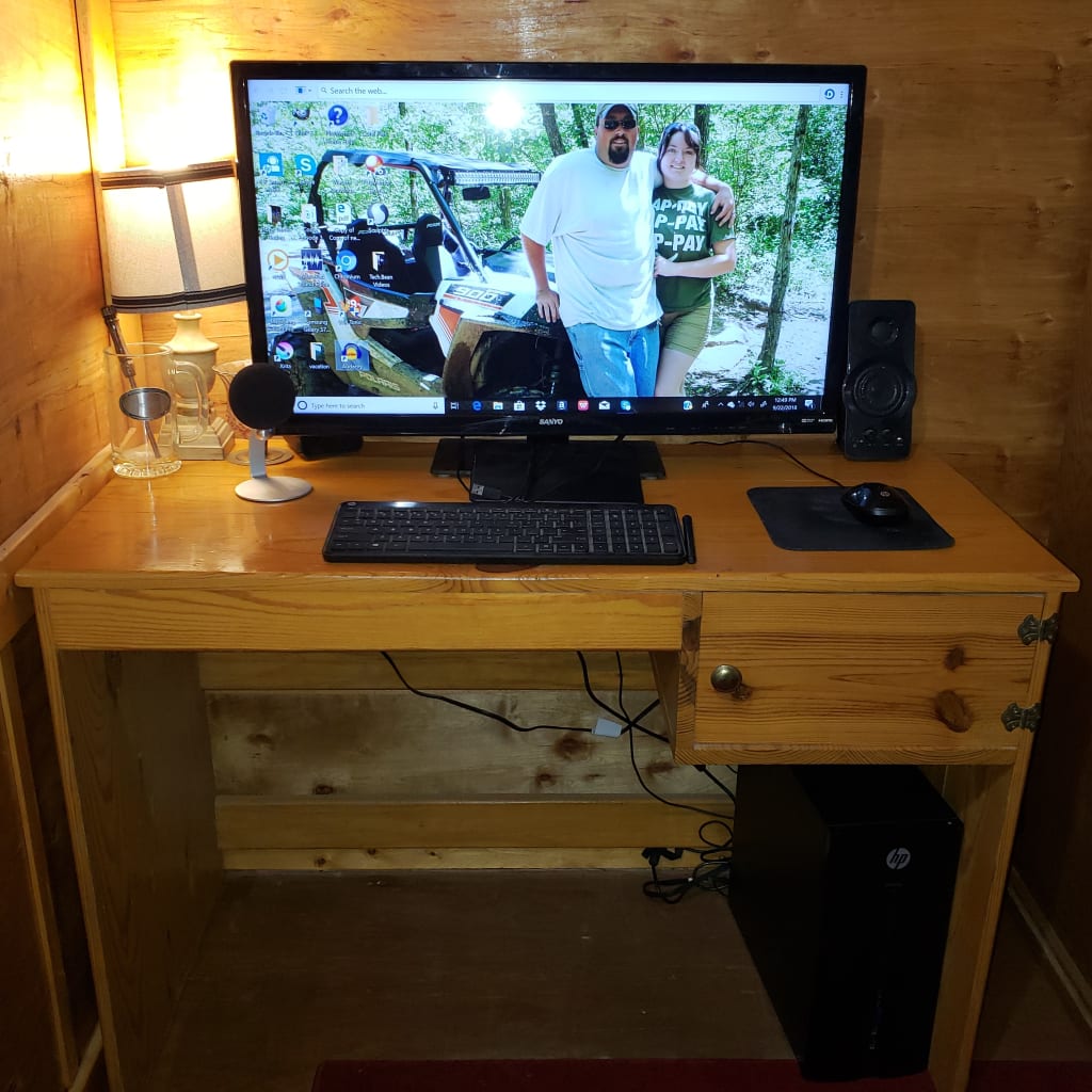 This is my setup. I have a refurbished HP tower with an old TV that I don't use anymore that was sitting in storage in my loft.