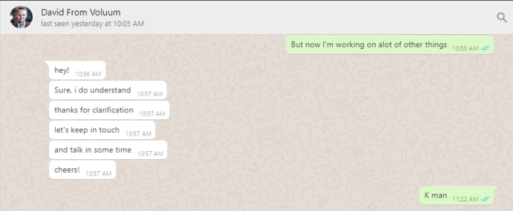 What you can see in the image I attached below is a chat that I was having with my voluum account manager on WhatsApp,