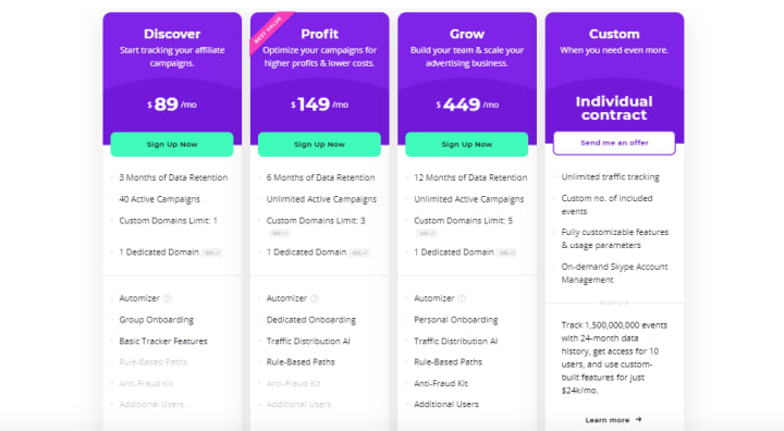 me myself being someone that likes to try things out of curiosity paid for plans with the 3 different software (and yeah I’ll still compare voluum to these other two later in the article)