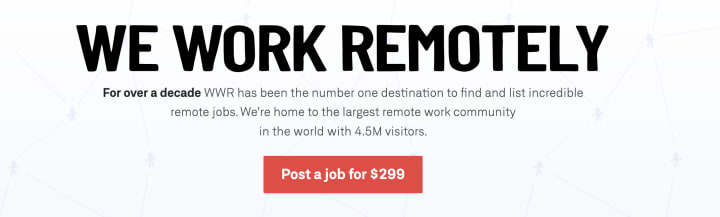 We Work Remotely is the leading platform for individuals seeking remote employment. It attracts 4.5 million visitors and is especially advantageous for web developers and tech professionals.