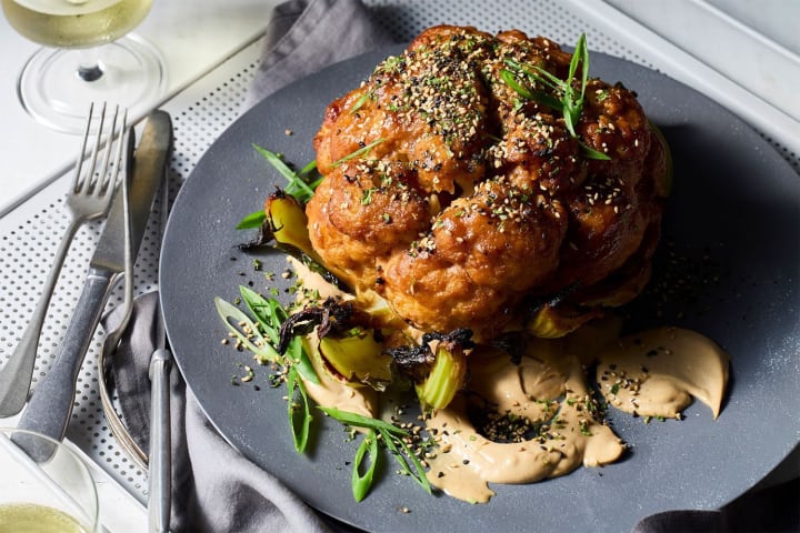 Whole roasted cauliflower with miso sauce: