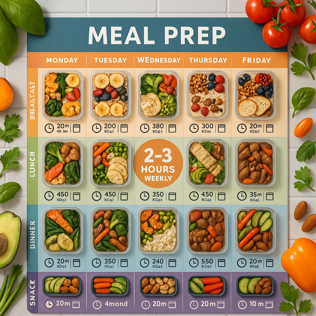 Focus on batch cooking basics: Cook one protein, one grain, and prep vegetables on Sunday. Mix and match throughout the week for variety. This takes 2-3 hours max and gives you multiple meal options.
