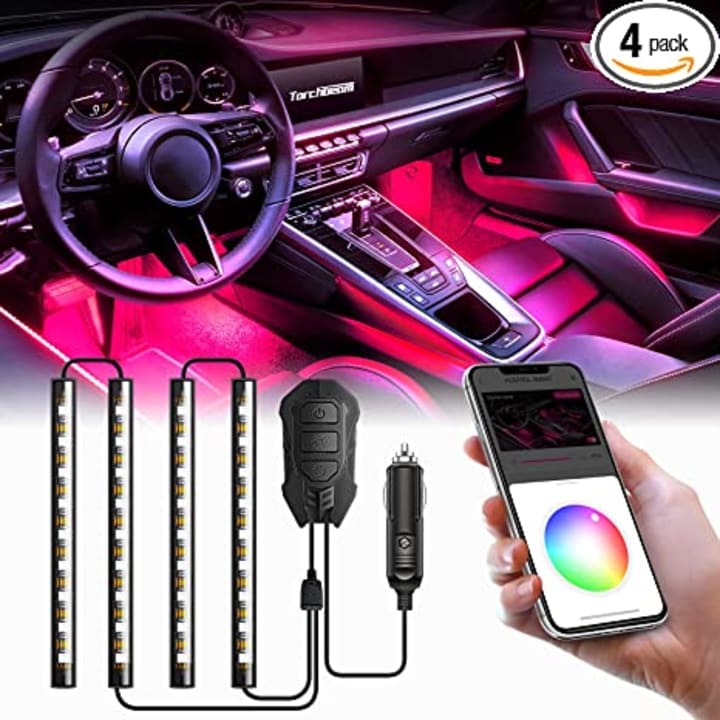 If you want to add some excitement and personality to your car's interior, you should consider the Torchbeam Interior LED Light for Car. These lights have an exclusive velocity mode that makes them brighter according to your speed. They also have a smart app that lets you set your color and mode when not driving, and a control box that lets you adjust them with one press when driving. You can choose from 16 million colors in the app and customize your own style. The lights also sync with the music beats and create a vibrant and dynamic atmosphere in your car. The lights are easy to install with durable tapes that can withstand high temperature and clips that can fix the cable neatly.