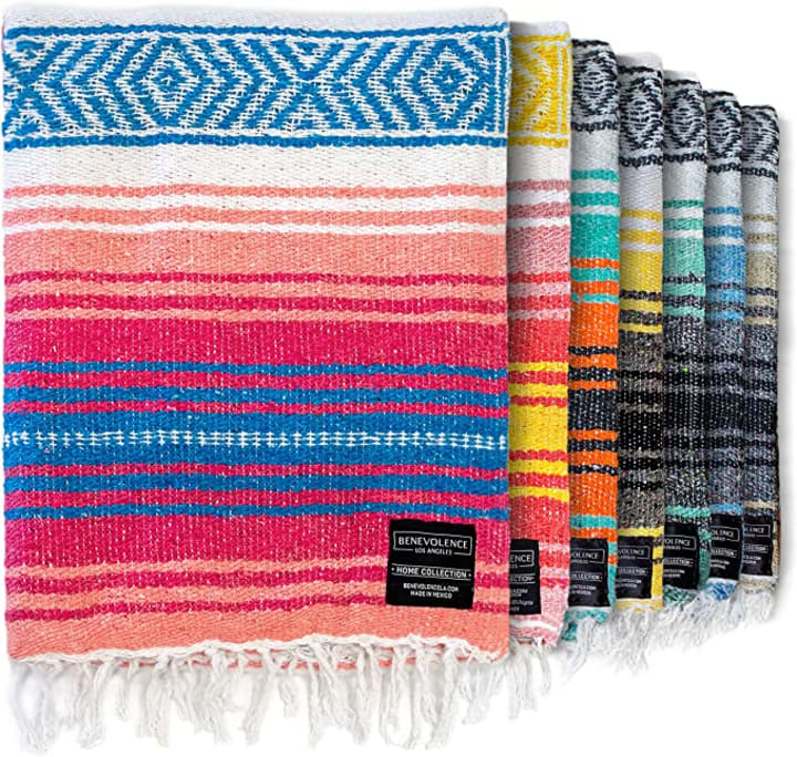 A yoga blanket is a versatile tool for every adventure, from yoga to picnics, long summer nights, or cuddling while relaxing at home. The Benevolence LA Premium Mexican Yoga Blanket is handmade by local artisans in Tlaxcala, Mexico, on a traditional wooden loom. It's super soft, breathable, and easy to carry, and comes in vibrant colors to add joy wherever you take it. It's also twin bed size (45x70 inches), lightweight (3 pounds),