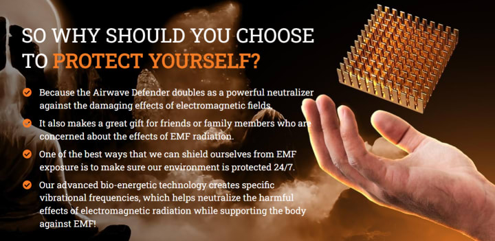 It's important to note that the effectiveness of the 5G AirWave Defender (EMF Shield) and its ability to protect against harmful EMFs may vary depending on factors such as the strength and frequency of the EMFs being emitted, the materials used in the device, and the specific design of the device. As with any product claiming to protect against EMFs, it's important to do your own research and compare different options before making a purchase.