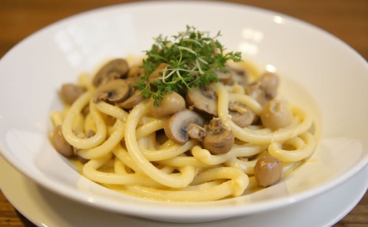 1. Creamy Garlic Mushroom Pasta