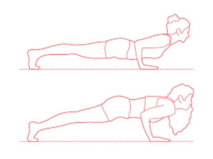 Strategy: Start in the board pose. Breathe out as you lower your body down into a half push-up, with your upper arms lined up with the floor. Keep your elbows contacting the sides of your ribs to keep a 90-degree point in the elbows' hoodlum. Attract your shoulders and guarantee your wrists and elbows are opposite to the floor, lining up with your body. Hold the asana for 10-15 seconds.
