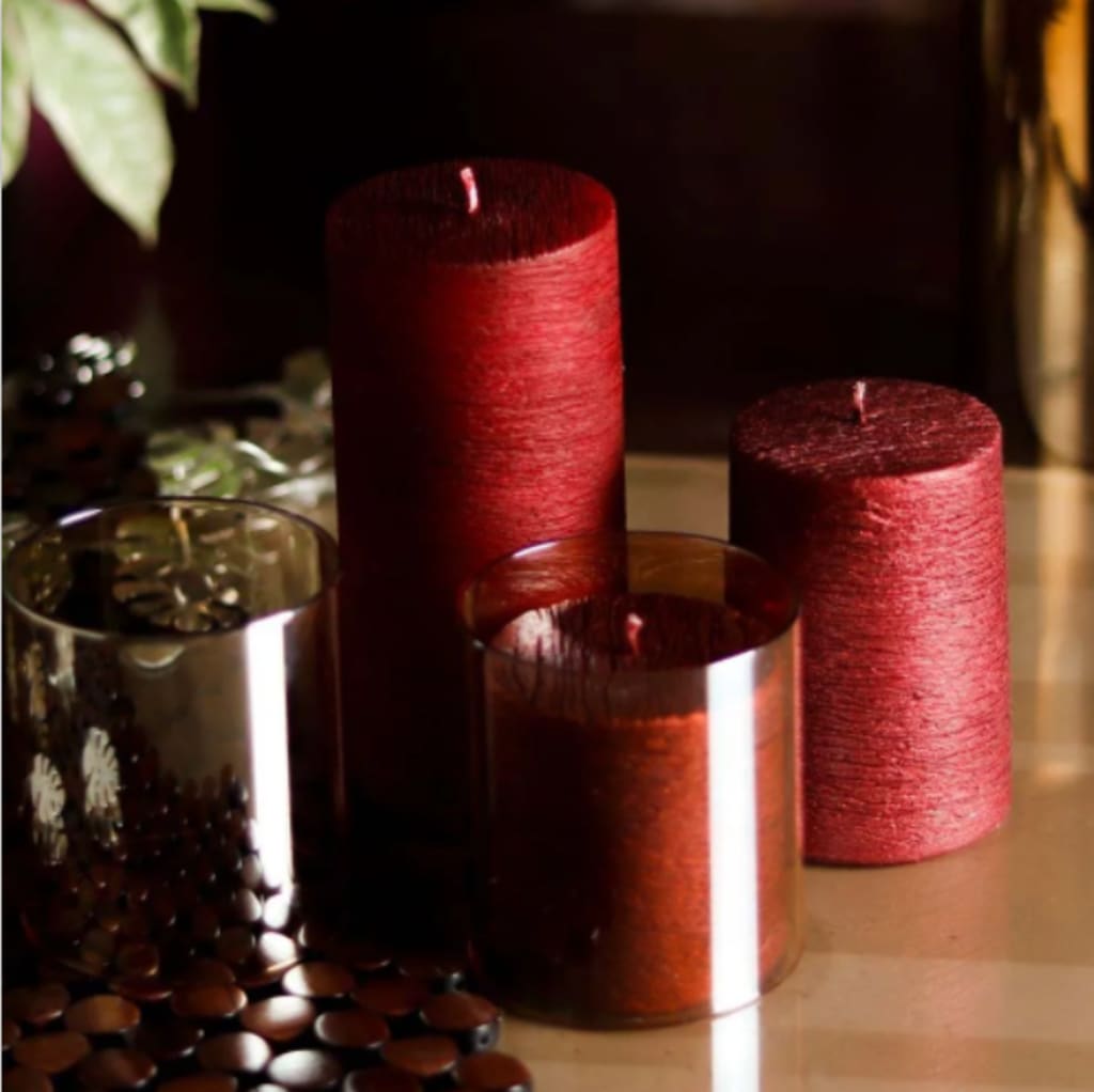 Pillar Candles are usually made of Paraffin wax which is rigid by nature and the rigidness allows the candle to stand alone without the help of any holder or container. Mostly they come in cylindrical or square shapes with one wick. Mostly, the paraffin wax is widely available and budget-friendly but if you prefer an eco-friendlier option, long-burning beeswax and clean-burning soy or coconut waxes are also good choices.